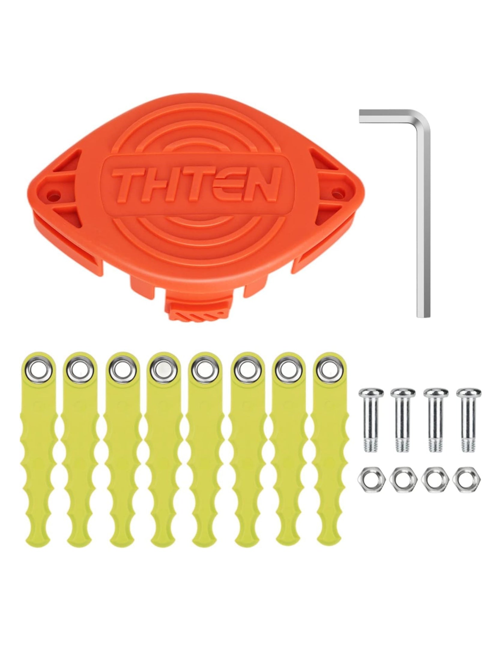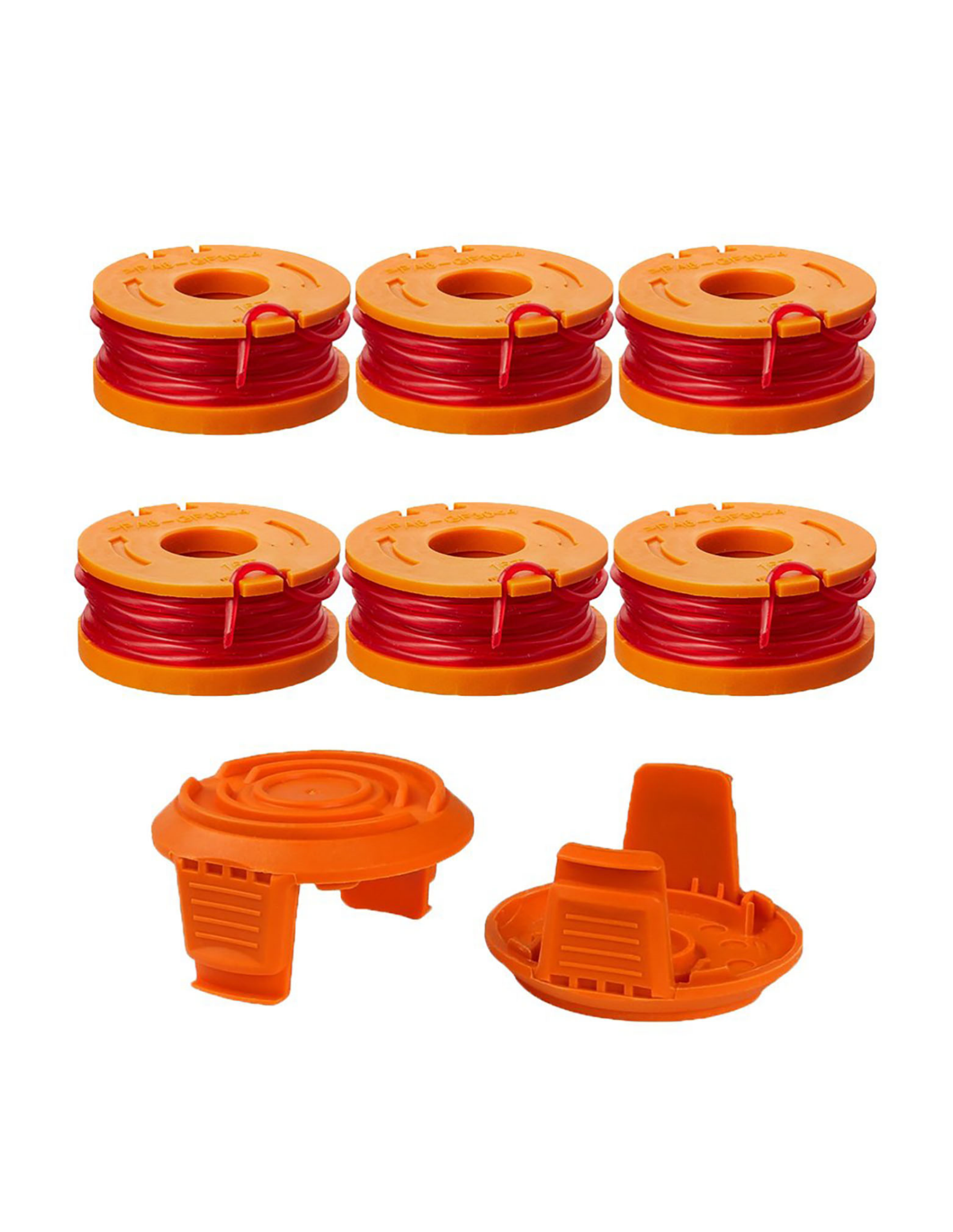 THTEN WA0010 Bobines de rechange pour débroussailleuse Worx WG180 WG163 Weed Wacker Eater avec couvercle de bobine WA6531 GT 50006531, recharges de coupe-bordure 3 m (6 bobines, 2 capuchons)
