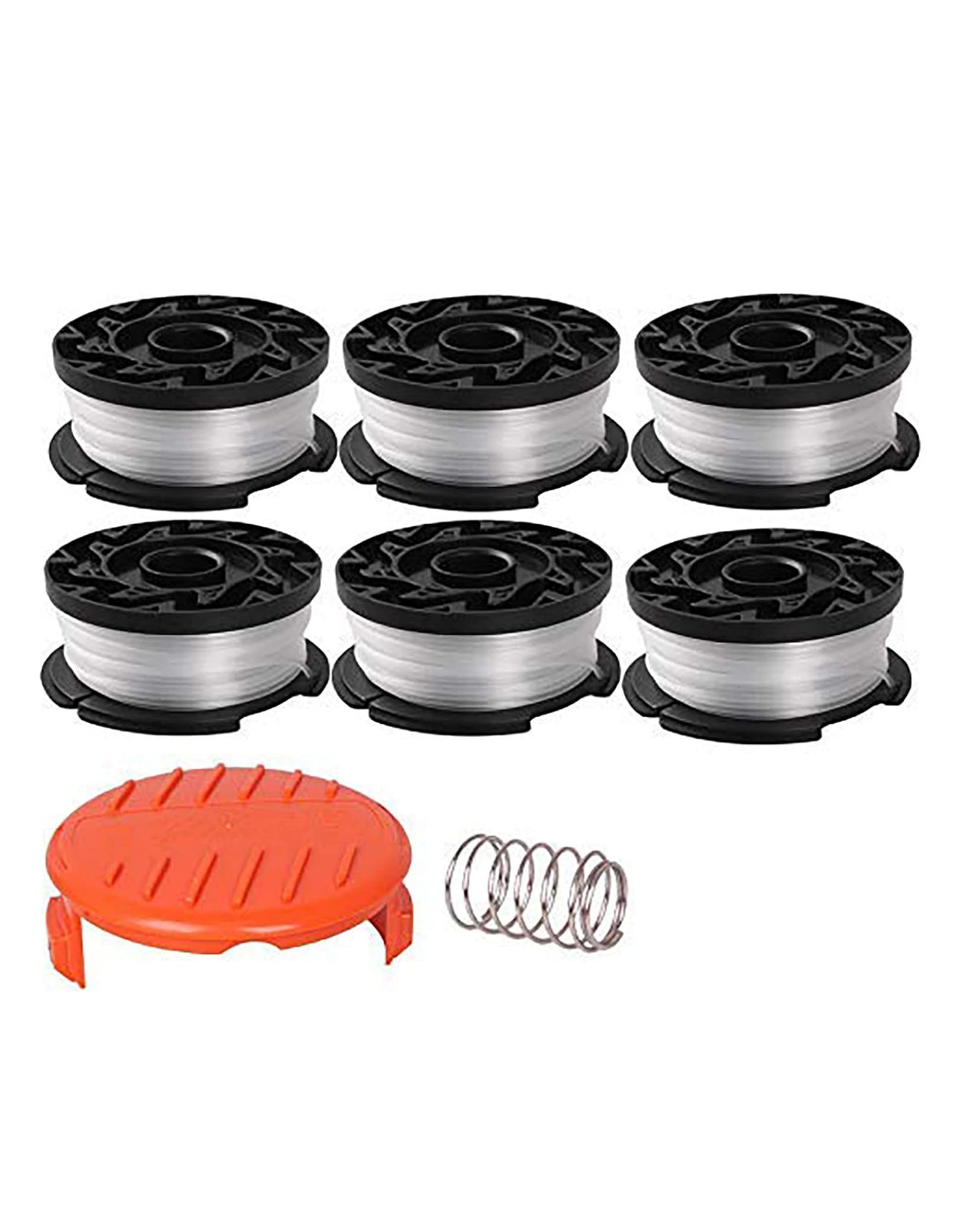 THTEN AF-100 String Trimmer Spool Replacement for Black and Decker 30ft 0.065" Refills Line Auto Feed Single Weed Eater,GH600 GH900 Edger with RC-100-P Spool Cap Covers (6 Spools, 1 Cap,1 Spring)