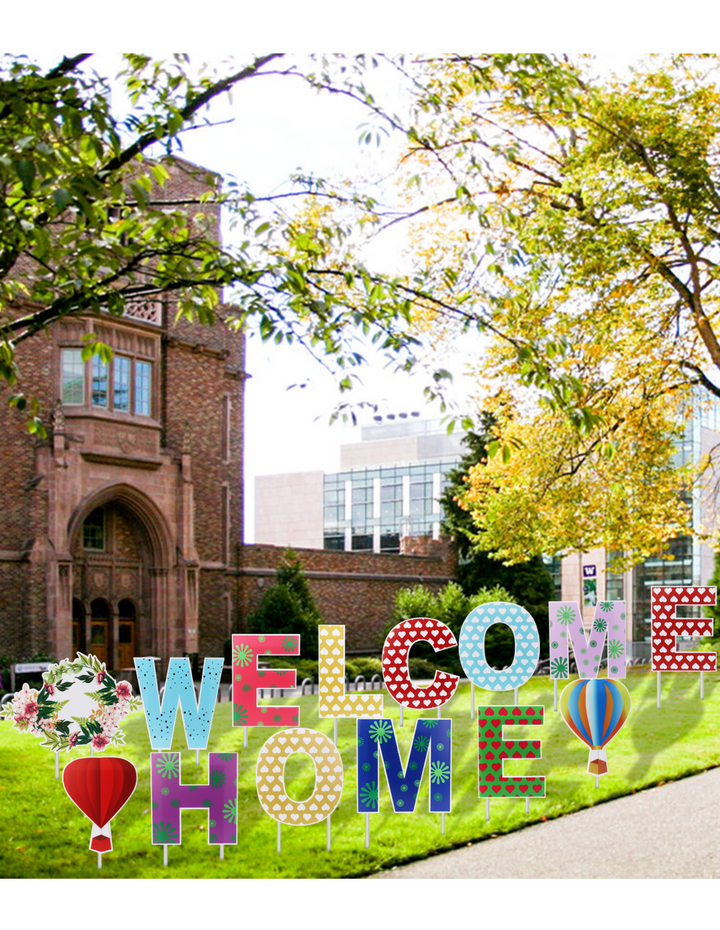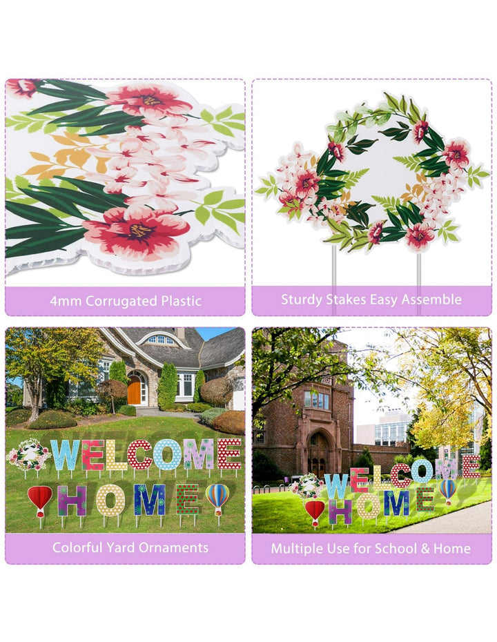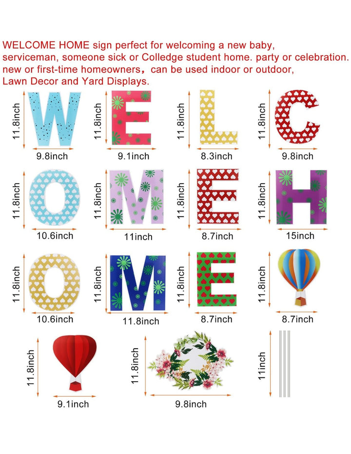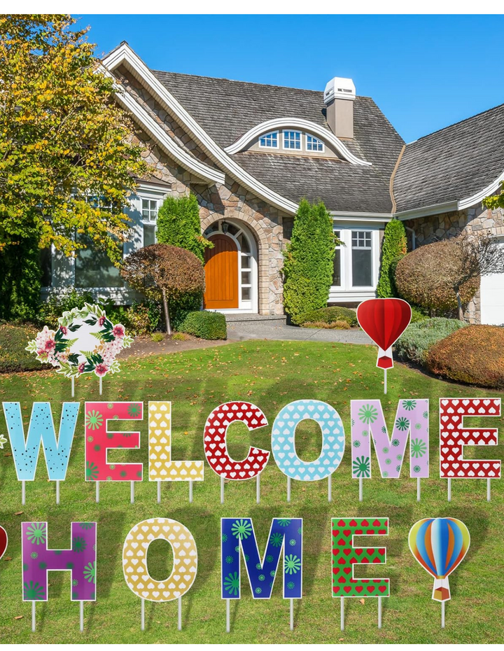 - The eye-catching and colorful “welcome home” letter design make your yard come to life. This is a surprise gift for your loved returning home. Black and gold modern classic design is an excellent choice for all kinds of welcome back parties. Making the family reunions more meaningful.