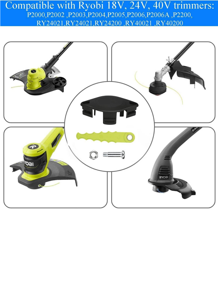 - Compatible with RYOBI Auto-Feed String Trimmers: 18-Volt, Hybrid, 24-Volt, 40-Volt, P2080, P2008A, P2008, P20100, P20010A, P20010, P2210, P2210CAN, P2200A, P2200ACV, P2200, P2030, P2031, P2003A, P2003, P2060A, P2060, P2006A, P2006, P2052, P2051, P2050, P2005, P2040, P2041, P2004, P20102, P2102BTL, P20120, P20103, P20103BTL, P20130, NOTE: It does not compatible with RYOBI 40V EXPAND IT.