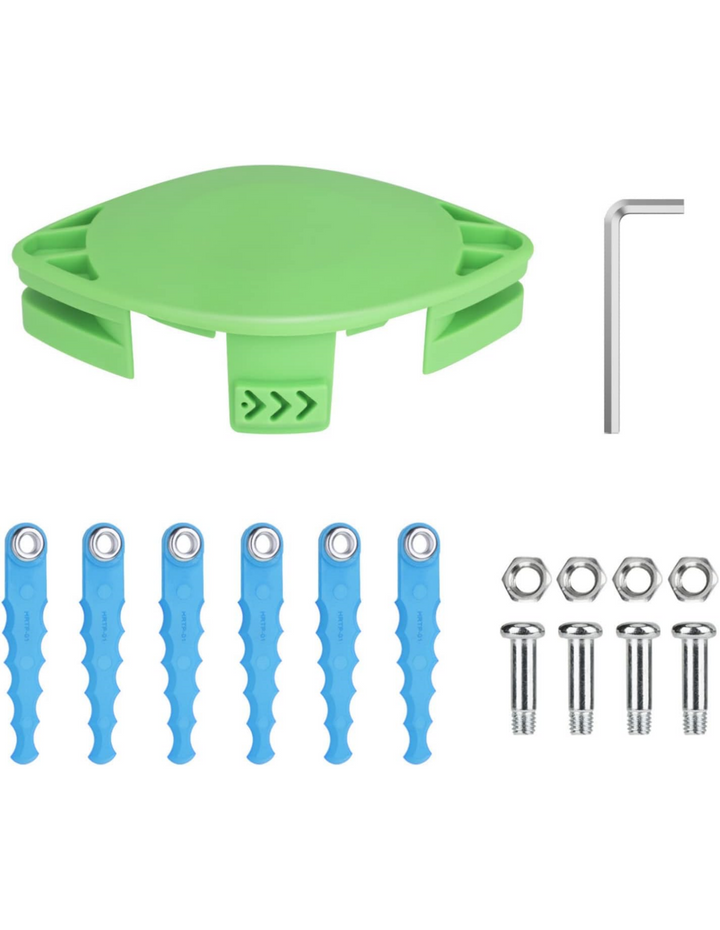 - Products Include: The package contains 6 Pack Polycarbonate Blades and 4 Set Screw, 1 Pack Trimmer Head,1 Pack Tool wrench.