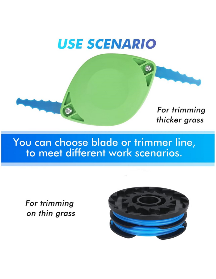 - 2900719 Bladed Trimmer Head fixed dual blades mean that you do not have to struggle with your trimmer line as it gets stuck