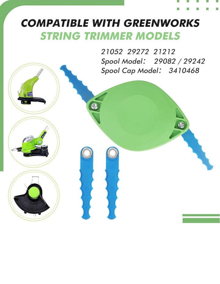 - Compatible with Greenworks string trimmer models 21052 21212 and 21272.