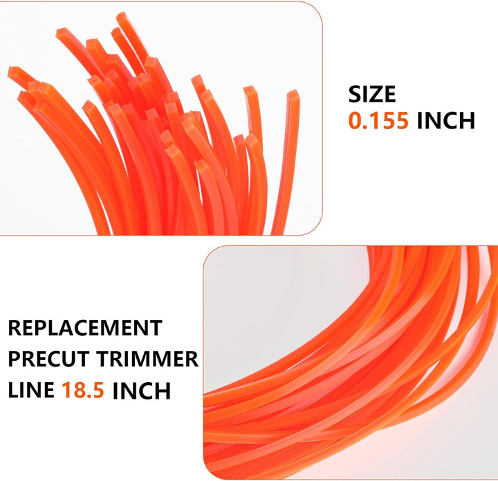 - Pre-cut .155 in. diameter x 18.5 in. long trimmer lines.