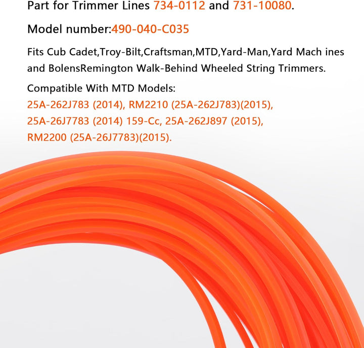 THTEN 490-040-C035 Cutting Trimmer Line Compatible with Cub Cadet 734-0112 and 731-10080 18.5 inch Long 0.155 inch Troy-Bilt,Craftsman and Remington Walk-Behind Wheeled String Trimmers