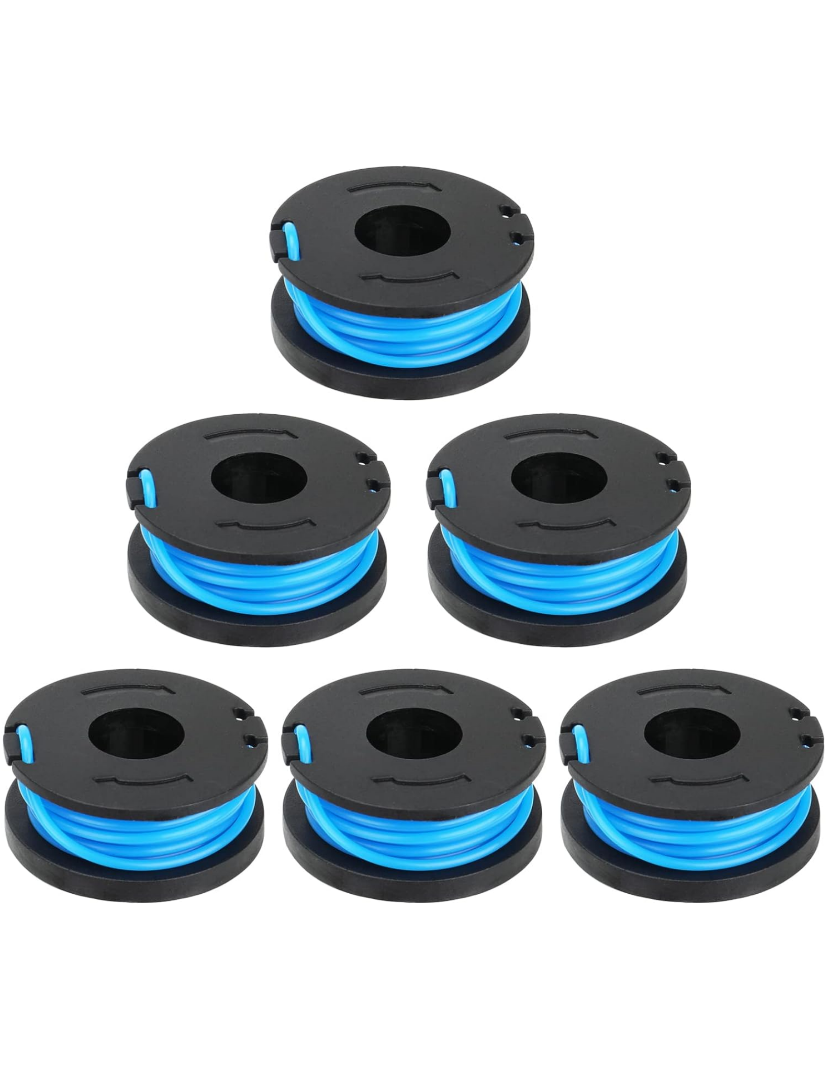 THTEN String Trimmer Spool Replacement for Ryobi One Plus AC14RL3A 18V 24V 40V 11ft 0.065 Auto Feed Cordless Weed Eater Spools Line with AC14HCA Cap Covers Parts (6 Spools, 1 Cap)