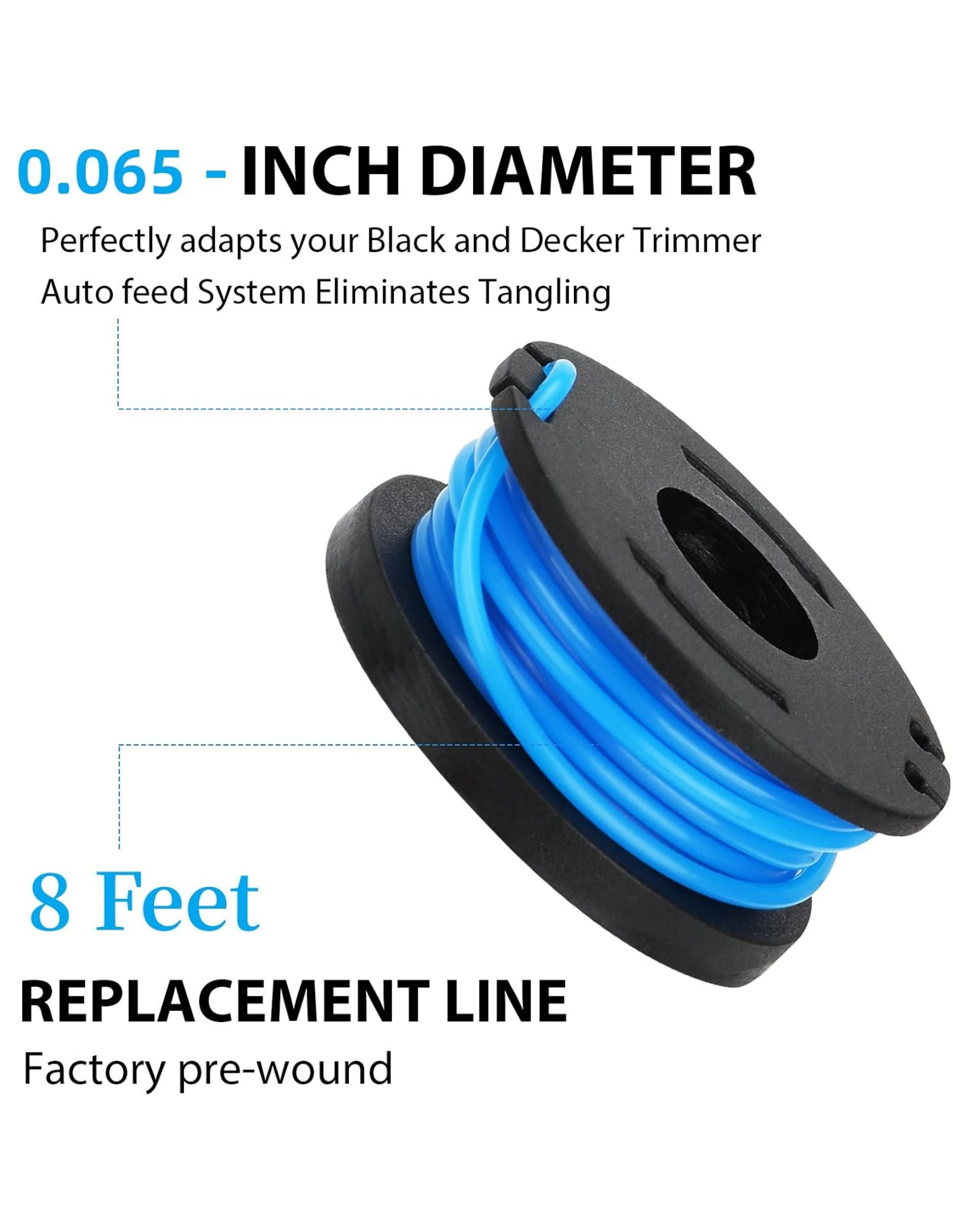 THTEN AF-100 String Trimmer Spool Replacement for Black and Decker 30ft 0.065" Refills Line Auto Feed Single Weed Eater,GH600 GH900 Edger with RC-100-P Spool Cap Covers (6 Spools, 1 Cap,1 Spring)
