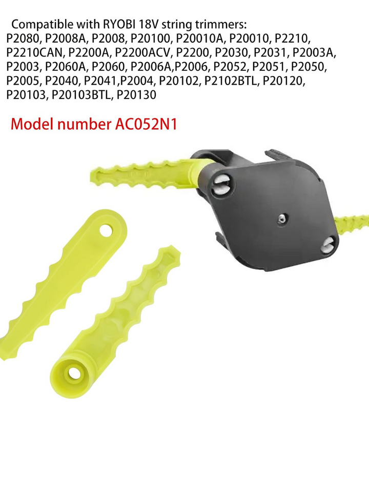 - ăCompatibilityă2-in-1 Pivoting Fixed Bladed Head Model # AC052N1 Compatible with RYOBI 18-Volt auto-feed string trimmers, P2080, P2008A, P2008, P20100, P20010A, P20010, P2210, P2210CAN, P2200A, P2200ACV, P2200, P2030, P2031, P2003A, P2003, P2060A, P2060, P2006A, P2006, P2052, P2051, P2050, P2005, P2040, P2041, P2004, P20102, P2102BTL, P20120, P20103, P20103BTL, P20130
