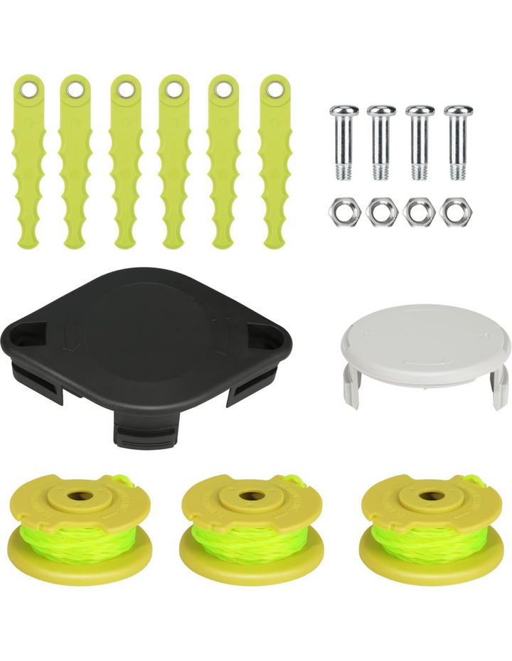 THTEN ACFHRL2 Polycarbonate Bladed and Trimmer Head, AC80RL3 Trimmer Spool Line & AC14HCA Spool Cap Compatible with Ryobi 18-Volt, 24-Volt & 40-Volt Trimmer (19 Pack)