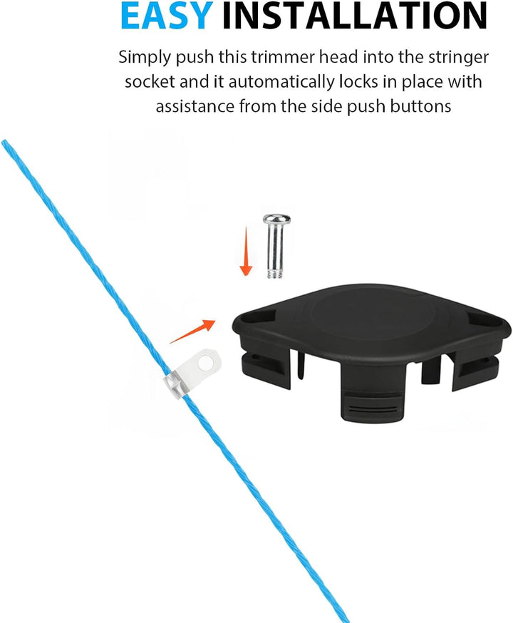- Easy Installation: simply push this trimmer head into the stringer socket and it automatically locks in place with assistance from the side push buttons, and it does not need adapter.