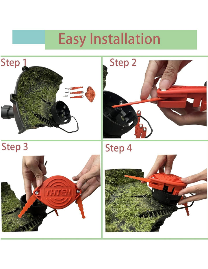 - [Easy Installation]: simply push this trimmer head into the string socket and it automatically locks in place with assistance from the side push buttons.
