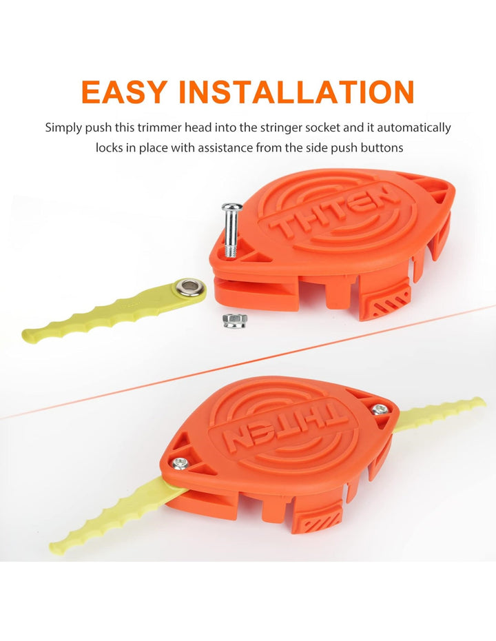 - [Easy Installation]: simply push this trimmer head into the string socket and it automatically locks in place with assistance from the side push buttons.