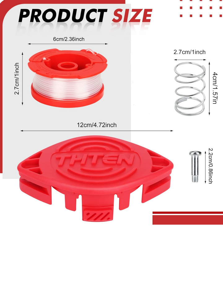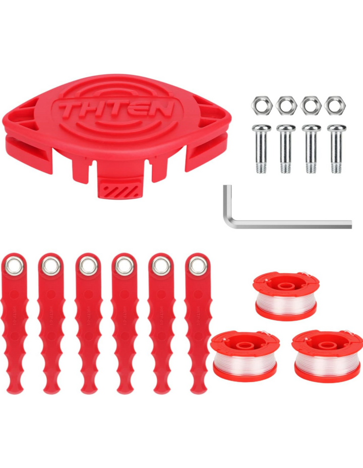 - Packing Including: 6 Pack Polycarbonate Blades, 4 Set Screw, 1 Pack Trimmer Head, 3 Pack Trimmer Spool, 1 Pack Tool wrench.