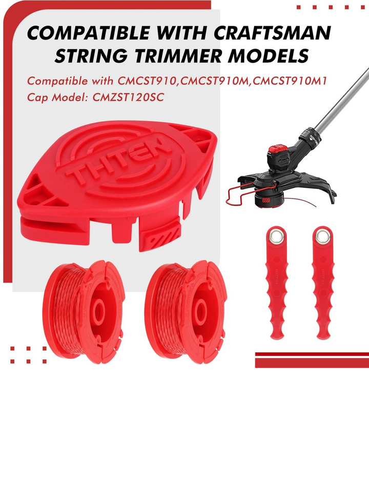 - [Compatible with Craftsman models]: CMCST910,CMCST910M,CMCST910M1 Series Craftsman WeedWacker String Trimmers.Spool Model: CMZST0803,CMZST080; Cap Model: CMZST120SC.