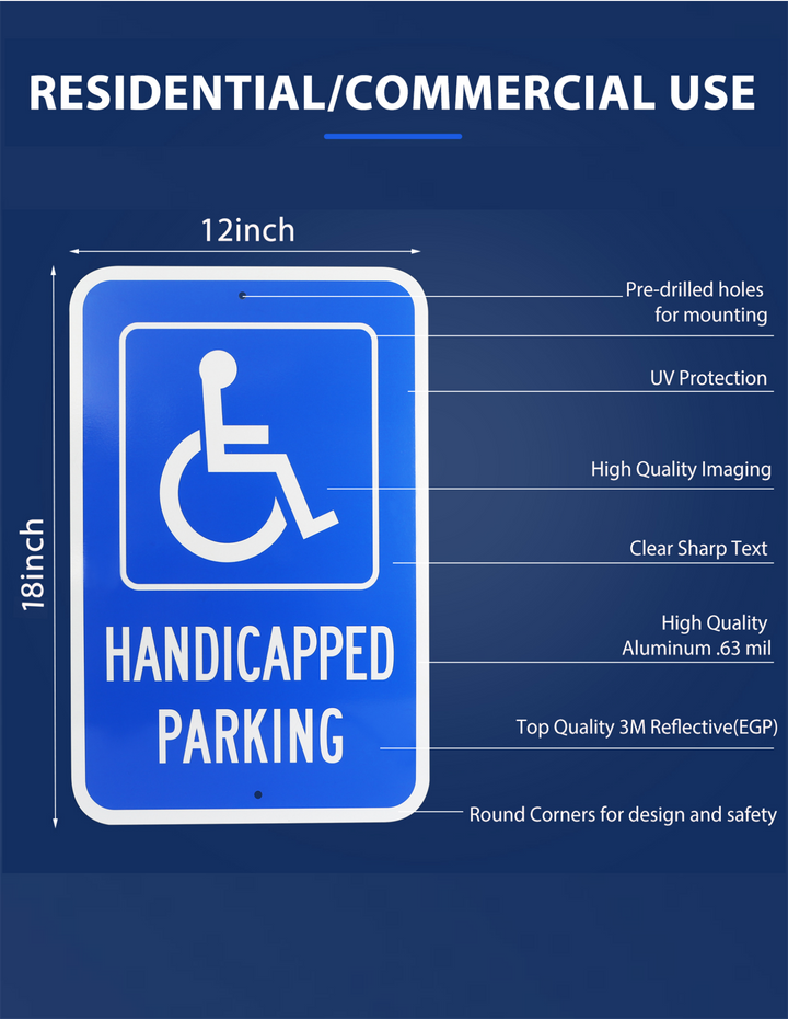Thten Handicap Parking Sign, Reserved Parking Sign, Large 18"x12" 3M Reflective EGP Rust Free .63 Aluminum,Weather Fade Resistant,Easy Mounting,Indoor Outdoor Use
