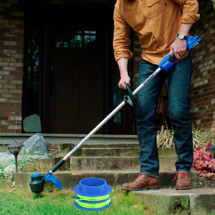 - The Kobalt string trimmer dual-line spool is pre-wound to make replacing the line spool quick and easy.