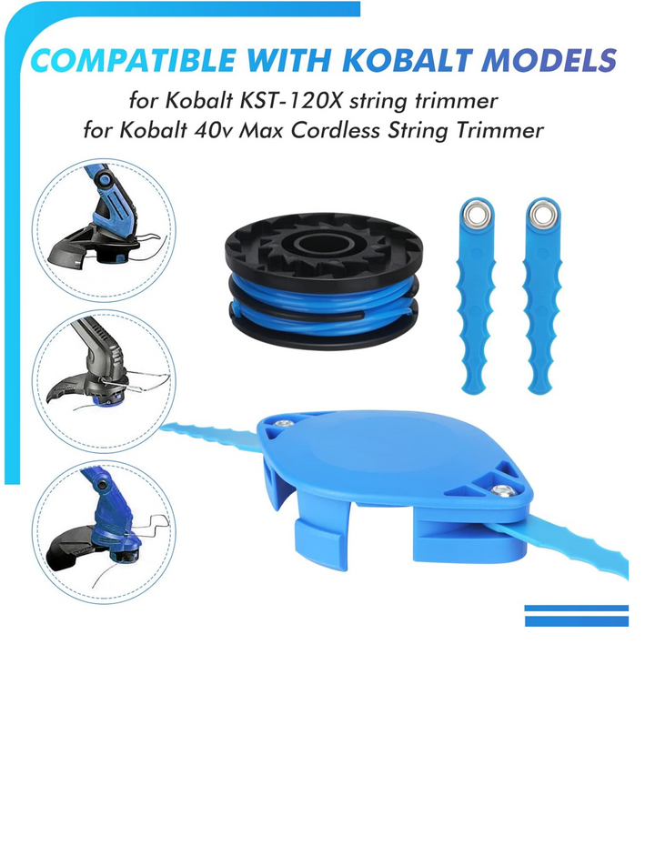 - Compatible with Kobalt replacement pre-wound trimmer line for Kobalt KST - 120X and 40v Max Cordless String Trimmer.Not compatible with Kobalt 40V Kst 1040b-03 Trimmer Head