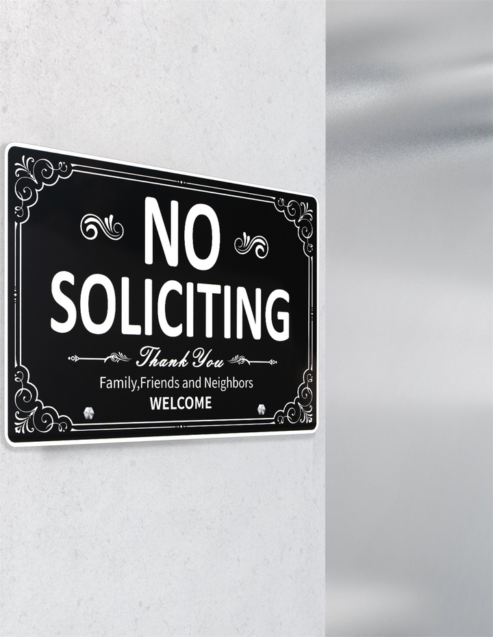 - Visible Text Long Lasting and Rust Free. UV Printed Coroplast 12" x 8" No Soliciting Sign For House.