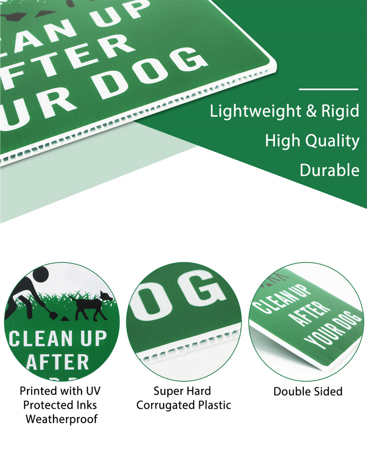 - Our plastic please clean after your dog sign 12"X9'' is laminated with clear film for extra protection and durability