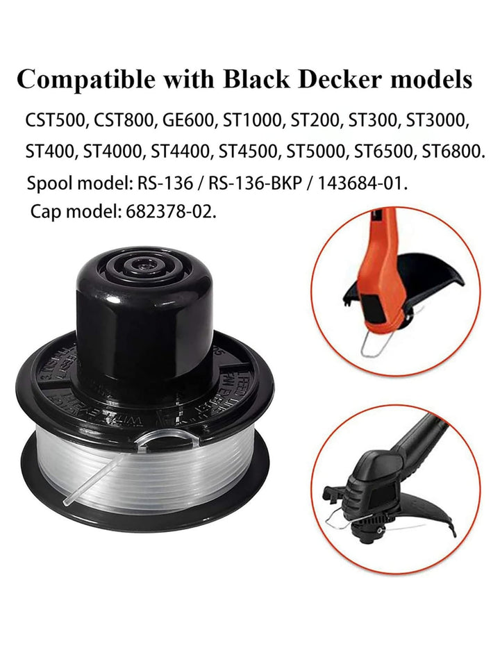 - [Spool Specification]: Compatible with Black&Decker string trimmer spools, 20ft 0.065 inches,RS-136 / RS-136-BKP / 143684-01.