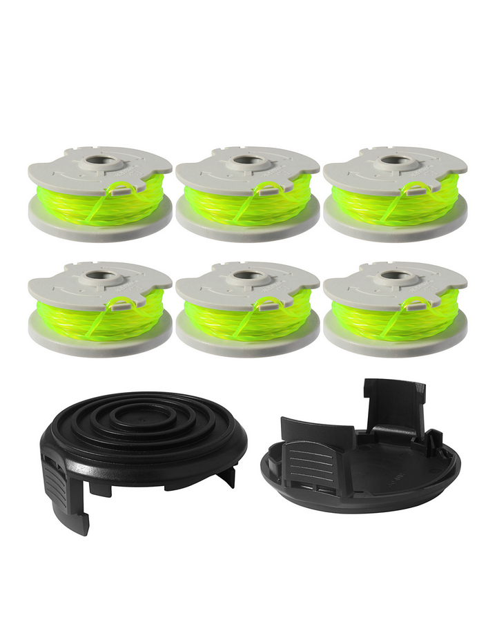 THTEN WA0014 Trimmer Replacement Spools for Worx WG168 WG184 WG190 WG191 Weed Eater String Edger Spool Line Refills Parts Auto-Feed 20ft 0.080" with WA0037 Cap Covers (6 spools,2 Cap)