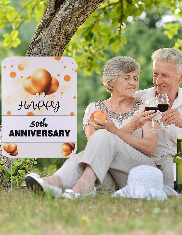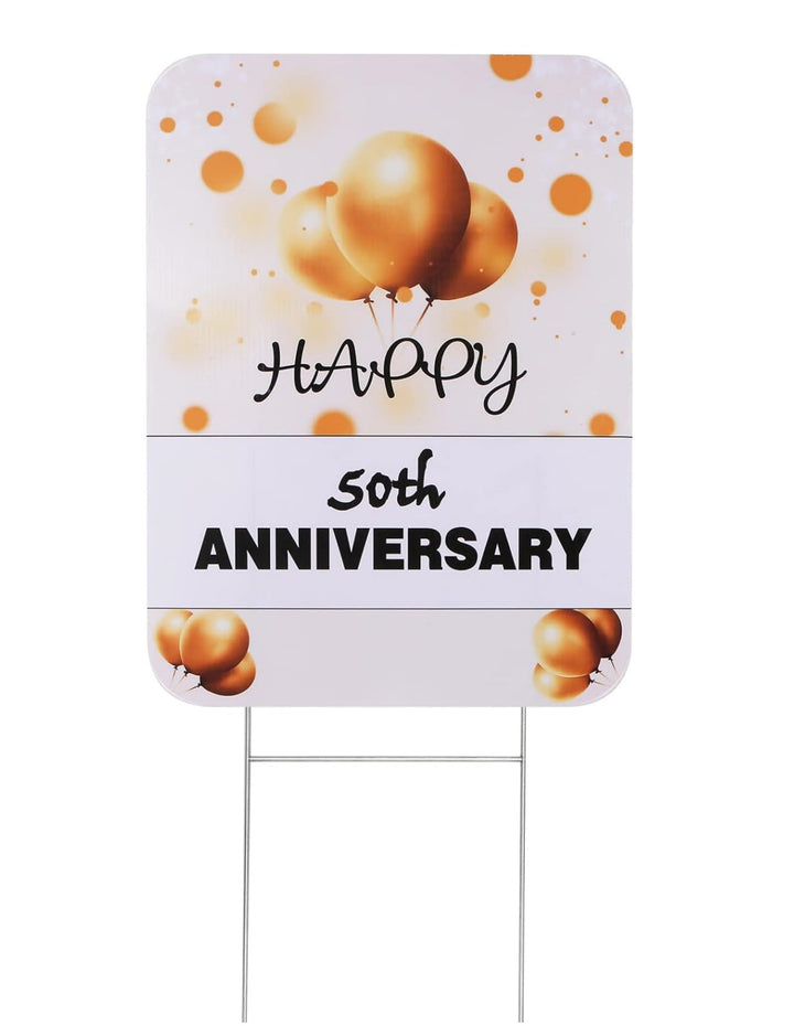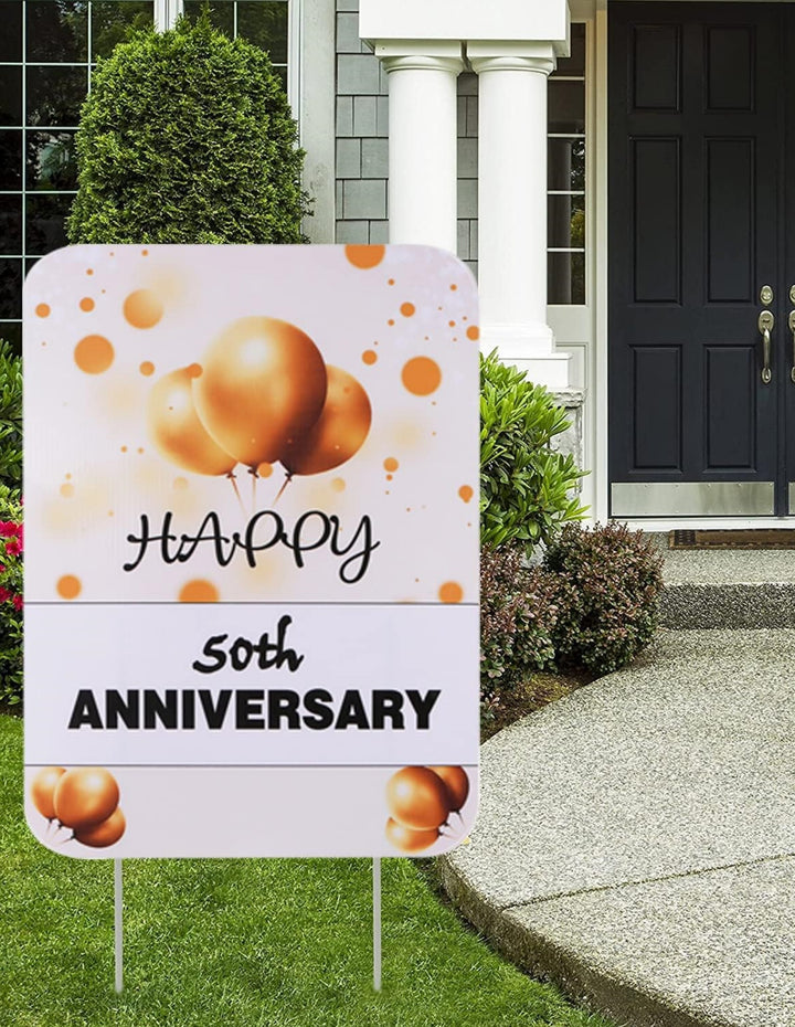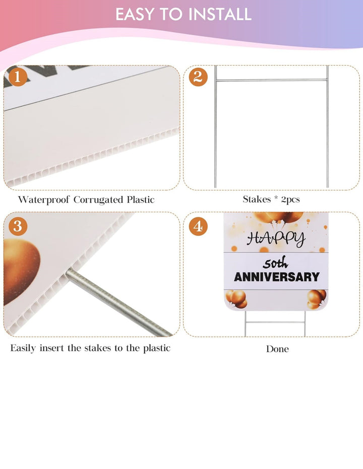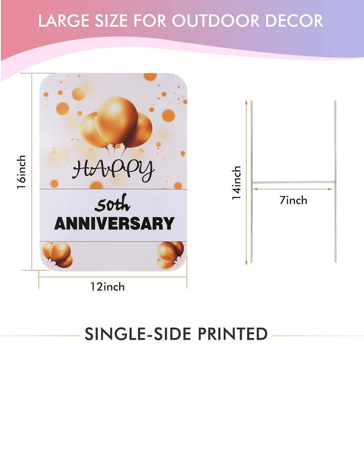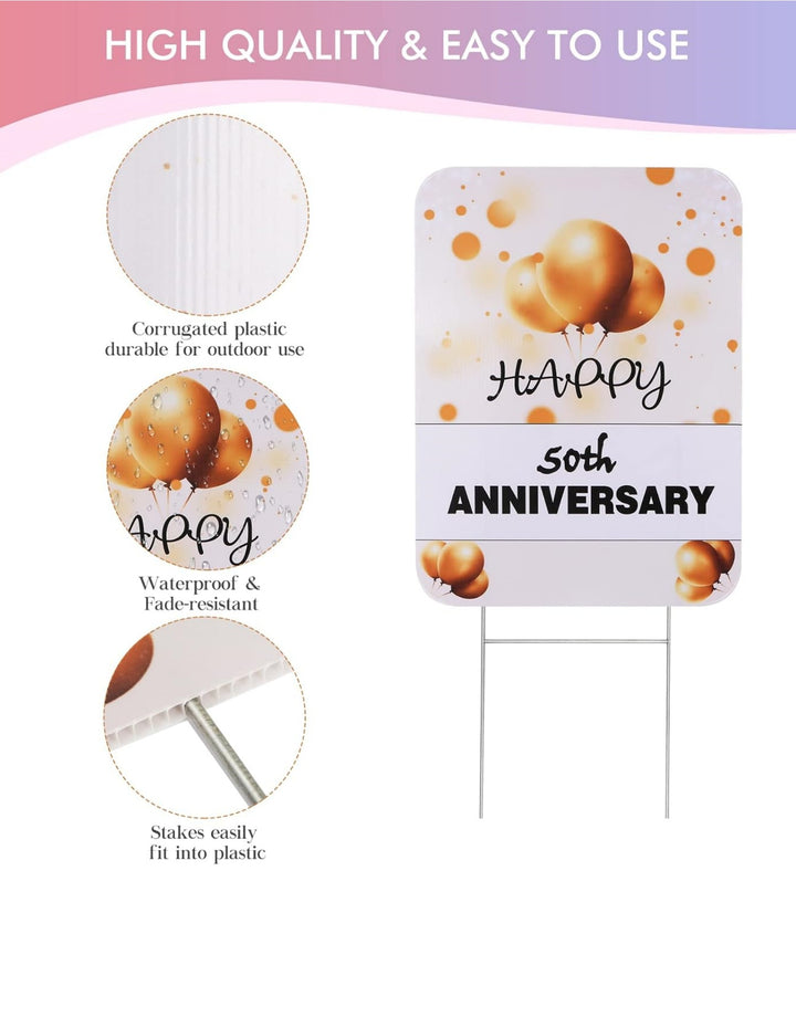 - 💕【What You Will Receive】 - You will get 1 pieces of 50th wedding anniversary yard sign,that come with 2 pieces of study stakes to fix the anniversary yard sign on the ground.