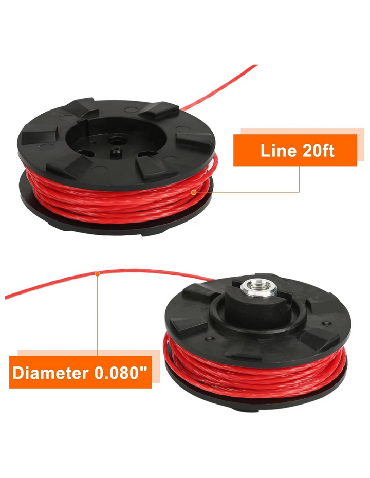 - Pre-Wound Dual 0.080" 20ft Aerodynamic Line for cordless cutting efficiency